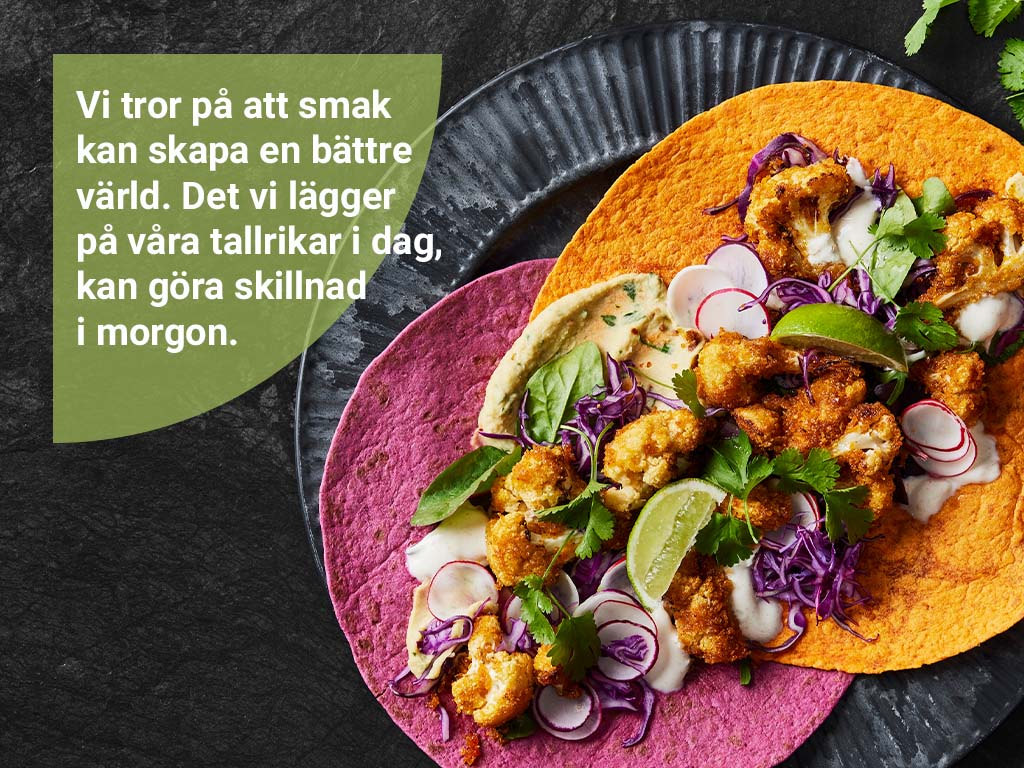 I vår koldioxidneutrala fabrik i Landskrona bakar vi varje år 400 miljoner tortillas. Vetet som används har odlats med hållbara odlingsmetoder som ger upp till 30 % lägre klimatpåverkan.