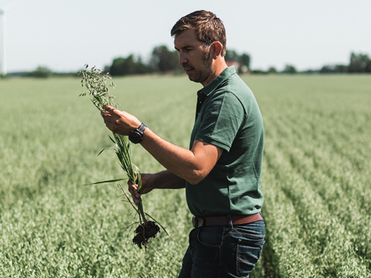 Genom Lantmännens odlingsprogram Klimat & Natur kan vi erbjuda vete, havre, korn och råg med upp till 30% mindre klimatpåverkan.