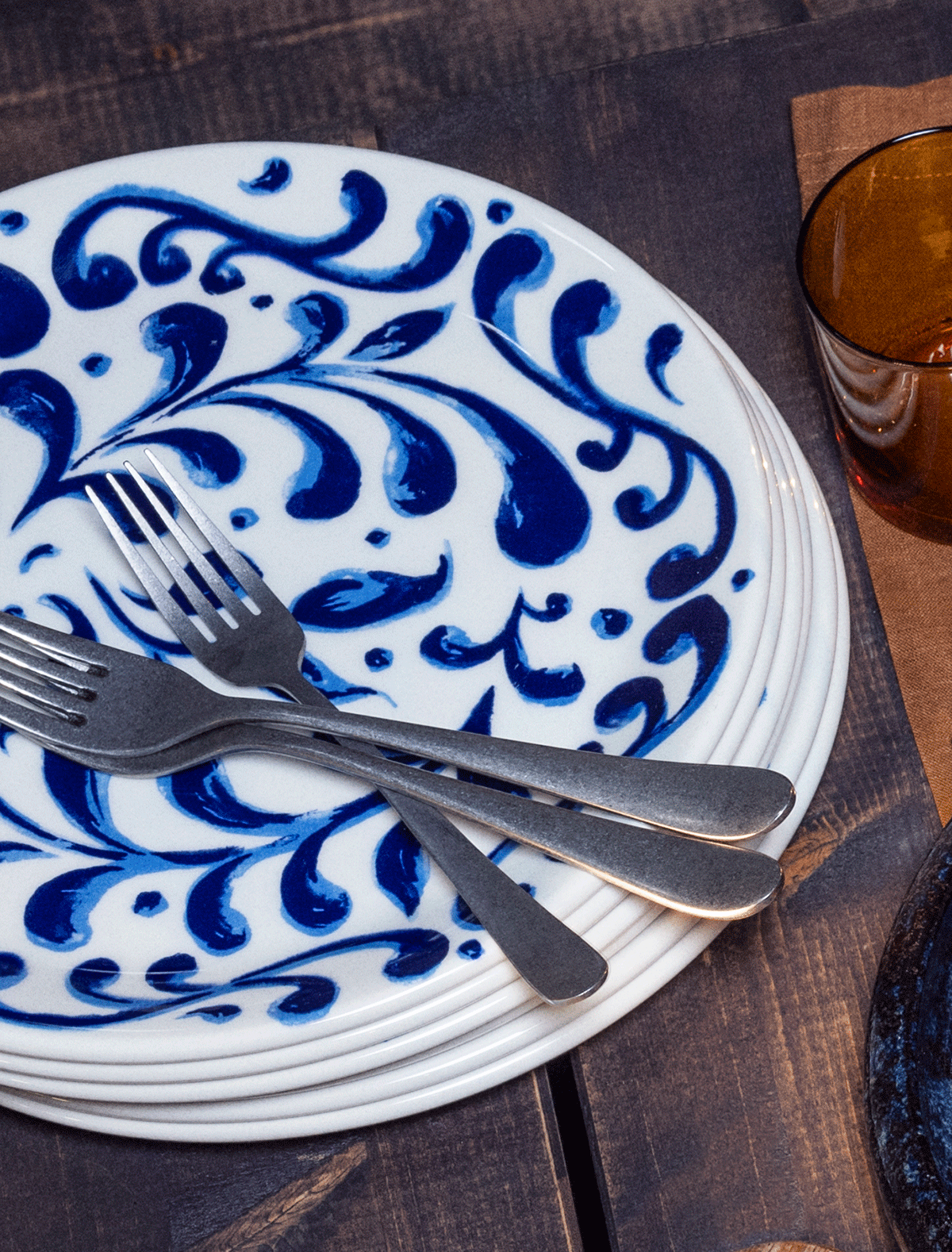 I Länge leve måltiden avsnitt 18 har vi valt att duka med en tallrik i blå nyans från serien Sea från Playground. Tallriken har en högre kant, är tillverkad i stengod som tål både diskmaskin och mikro, och finns i flera storlekar.