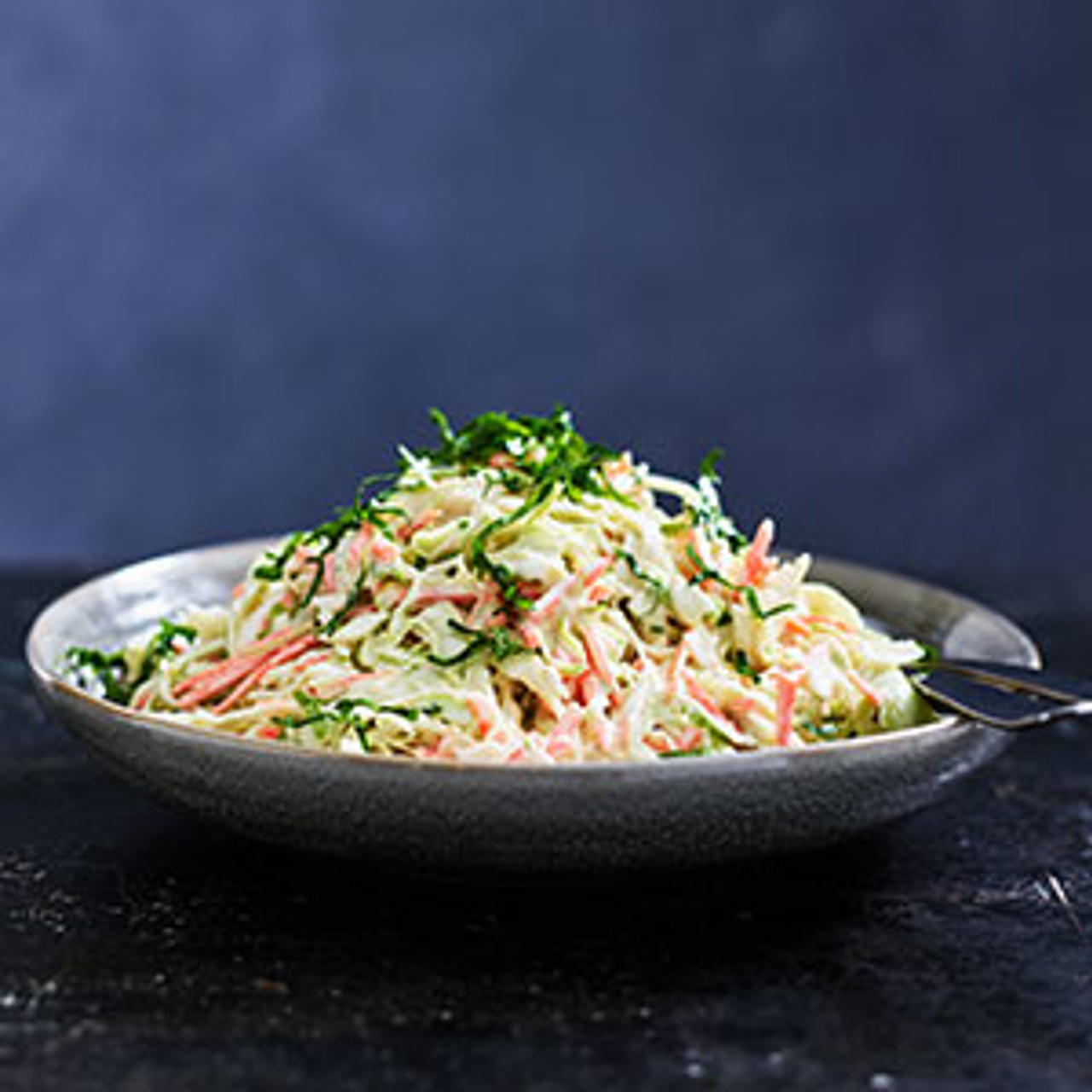 Coleslaw - klassiskt tillbehör till grillade rätter samt en självklar del av salladsbordet på lunchrestaurangen.240 g vitkål, hyvlad