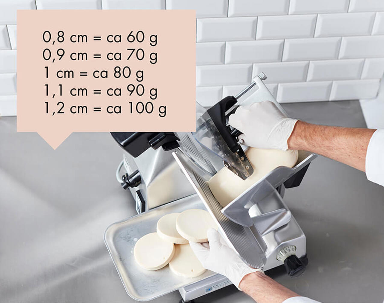 - Grilling Cheese går utmärkt att skära med skärmaskin för att få jämna skivor.Fritera