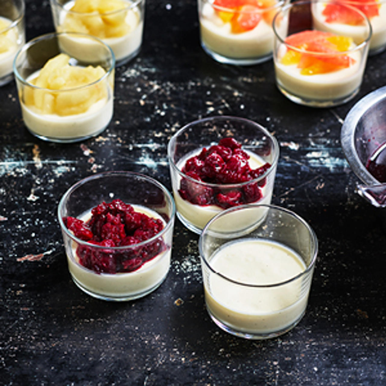 Toppa med t ex färska bär, äppelkompott, citrusfiléer eller bärkompott.