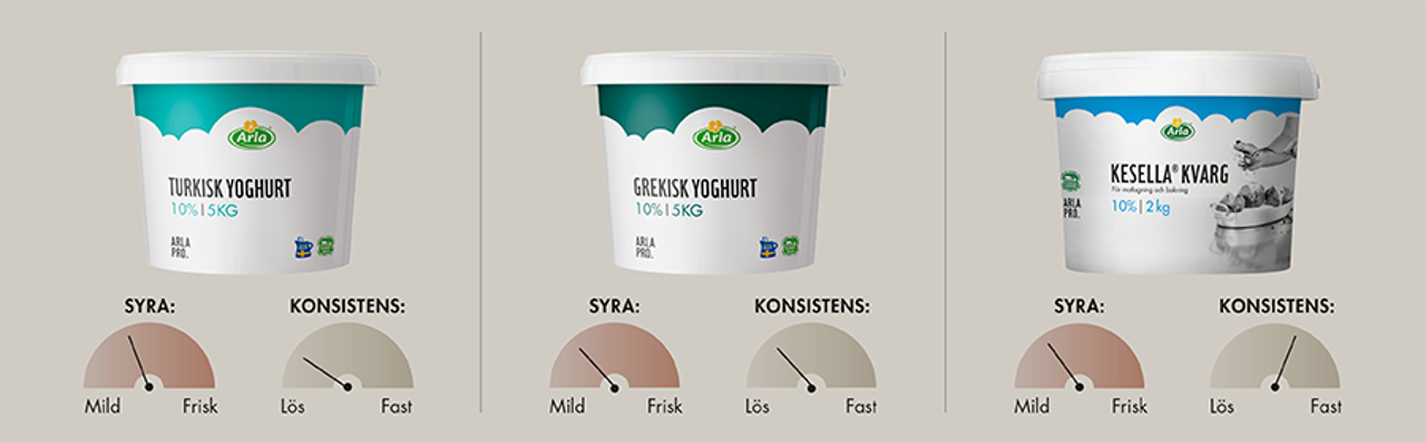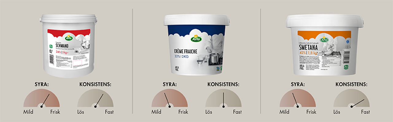 Fetthalten på våra syrade produkter varierar, liksom konsistensen och smaken. Här får du veta mer om konsistens, syra och funktion hos sex av våra syrade produkter.
