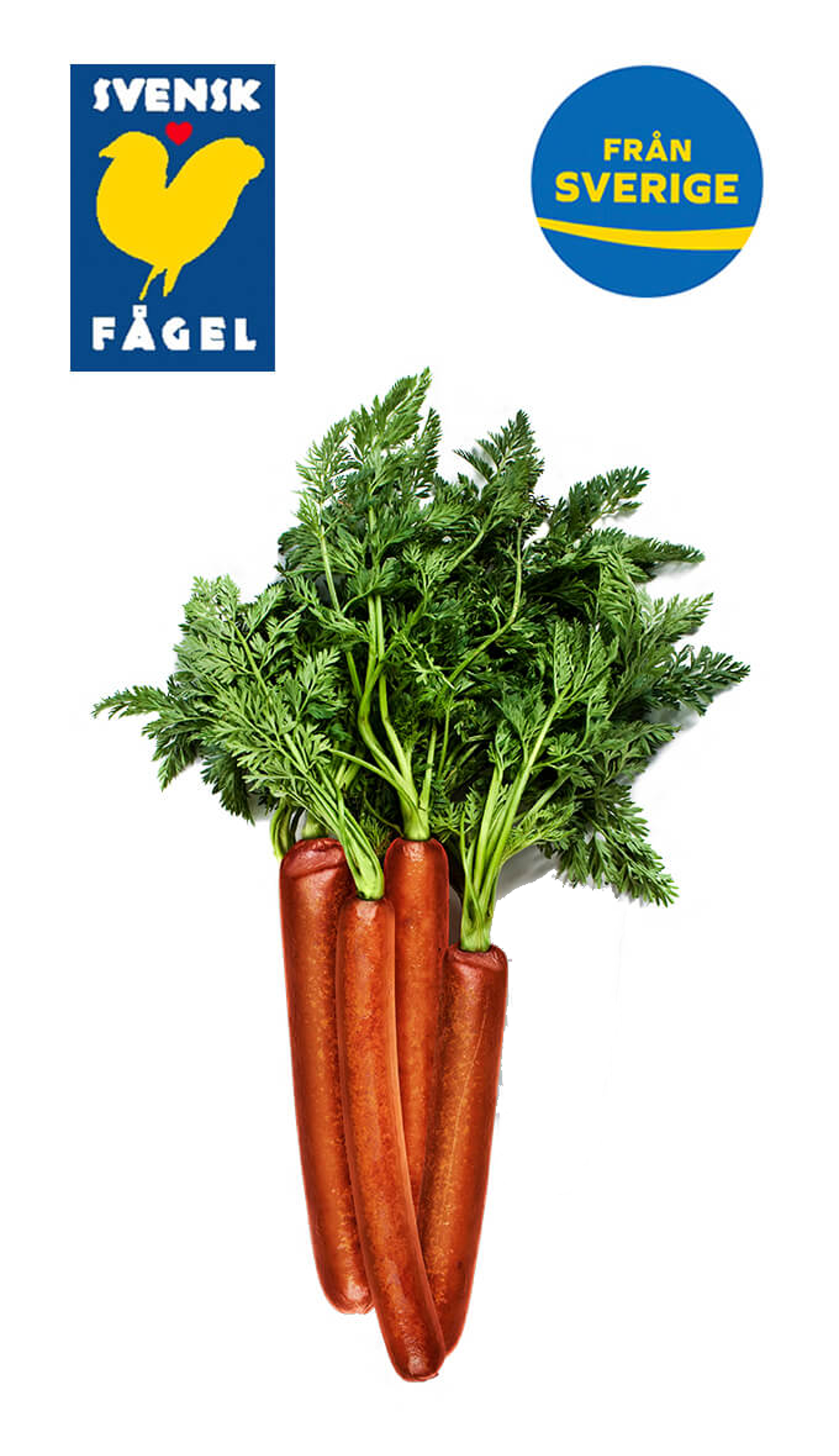 Med svensk fågel och svenska morötter är Klimat marknadens första kycklingkorv under 2 kg CO₂e/kg. Men den smakar och ser ut precis som en vanlig korv. Lurigt va?