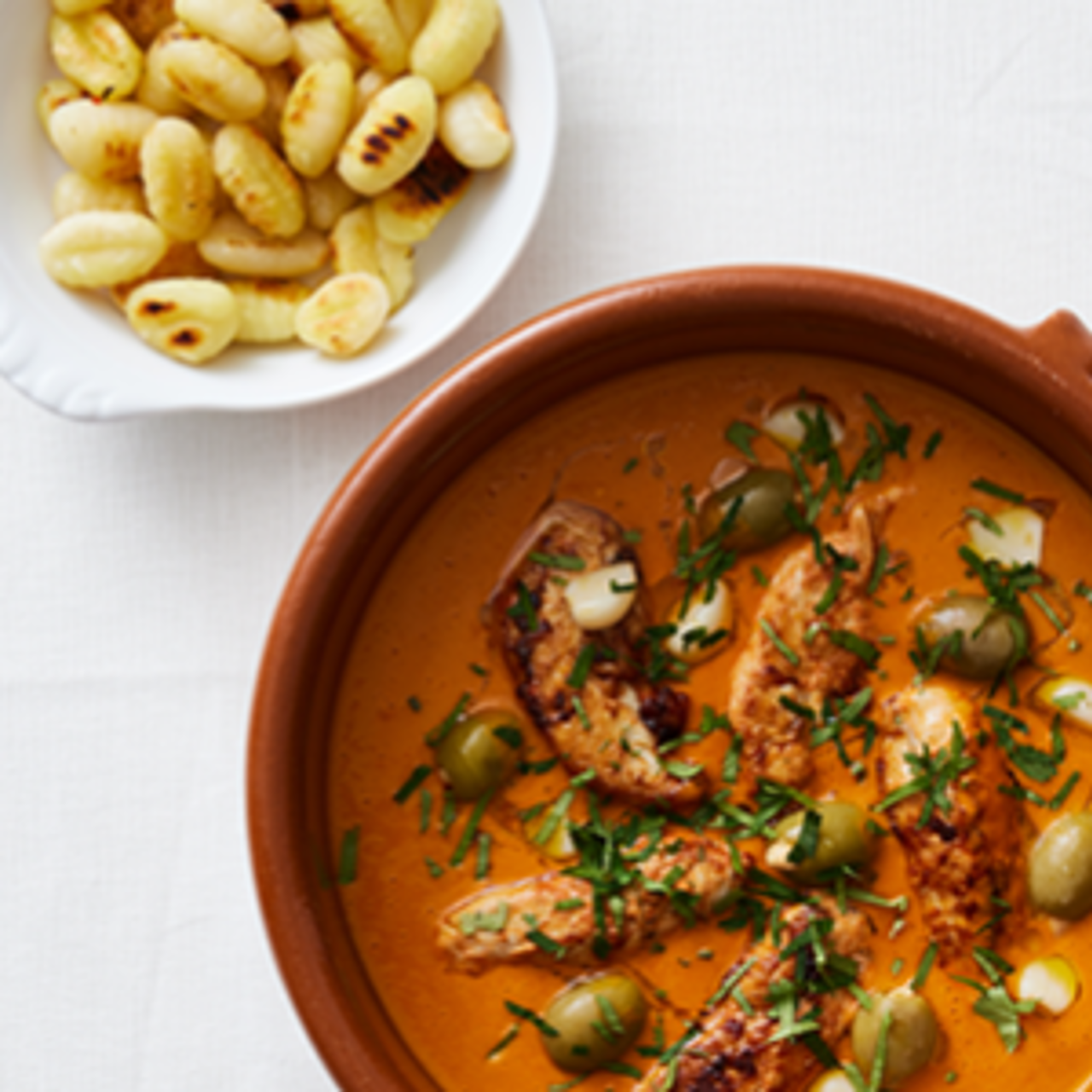 BASKISK RÖKT KYCKLING MED OLIV OCH VITLÖK