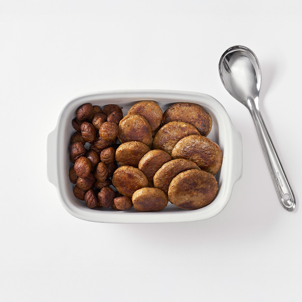 • Köttbullar 12 g (4,8 kg/förp.), Pannbiff 40 g (5 kg/förp.) och Burgare 55 g (5 kg/förp.). • Samtliga produkter innehåller svenskt nötkött. • Nästintill halverat klimatavtryck jämfört med konventionella varianter, tack vare att hälften av köttet är ersatt med goda grönsaker. • Pannbiff och Burgare är dessutom nyckelhålsmärkta. • Recept utan allergener – innehåller inte gluten, laktos, mjölkprotein, sojaprotein eller äggprotein – gör att de är enkla att servera till många.