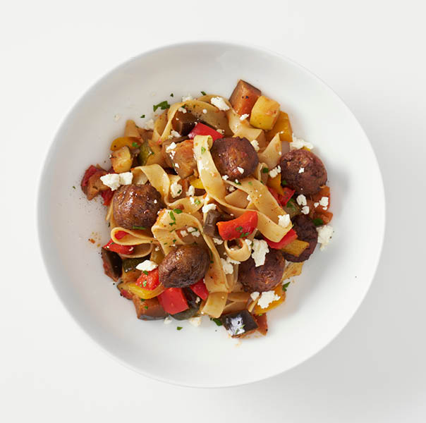 Ulrika Karlsson, arbetsledare på Fridegårdsgymnasiet i Håbo kommun, fick chansen att prova några av våra nya produkter och samtidigt bidra med receptidéer. Klassikern pasta med köttbullar var en given favorit, vilket resulterade i ett recept med köttbullar, tagliatelle och ratatouille. Dessutom skapades ett recept med pannbiff, indiskt ris, smaker av garam masala och en fräsch raita.