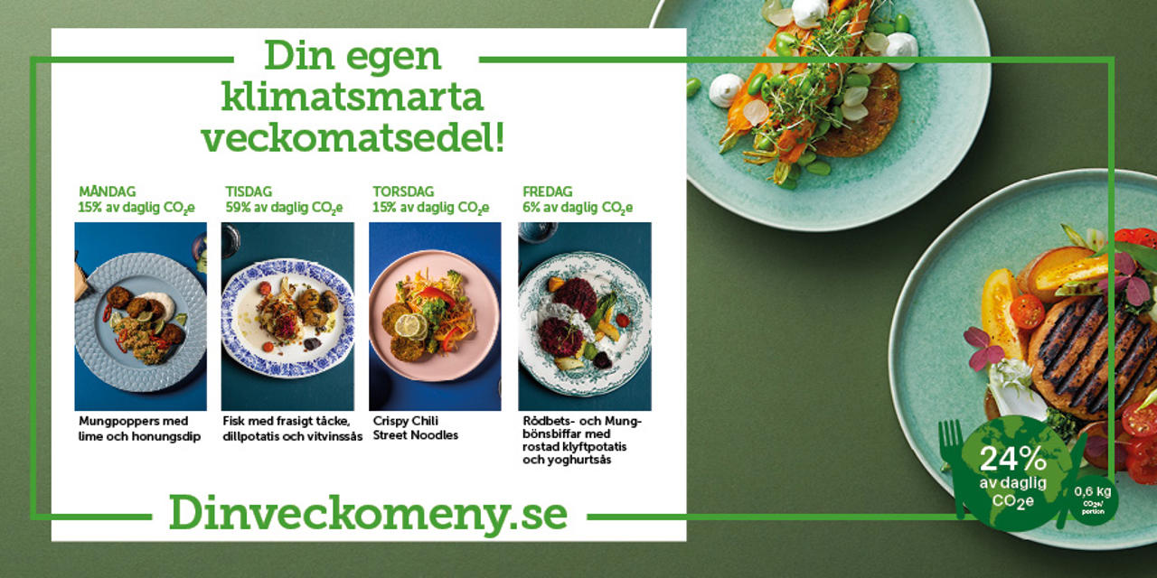 Vi gör det enkelt för dig! Välj hur många portioner och dagar du vill att din veckomeny ska innehålla. Klicka in på dinveckomeny.se och skapa dina klimatberäknade veckomatsedlar på direkten.