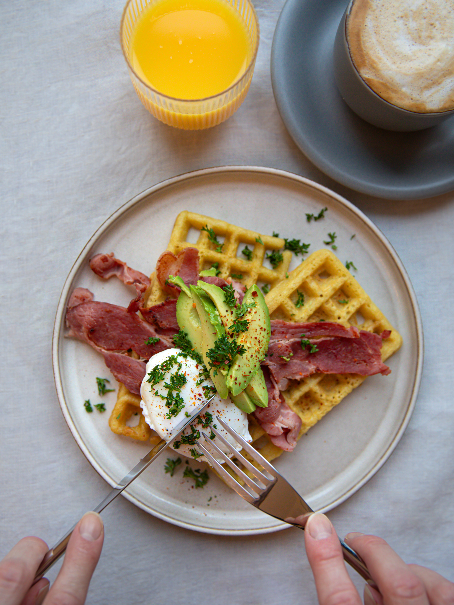 Börja dagen med en frukost som är lika god som den är vacker. En nygräddad våffla toppad med krämig avokado, ett perfekt pocherat ägg och knaperstekt bacon ger en energikick som håller hela förmiddagen.