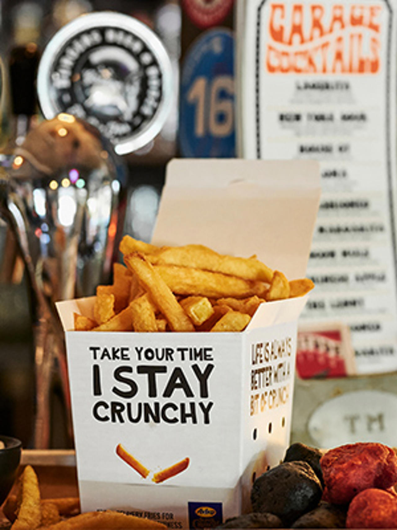 På episka Garage Bar kompromissas det inte. Här har köket gått över till Avikos färska Super Crunch pommes. Med krispighet i 30 minuter var det ett lätt val.