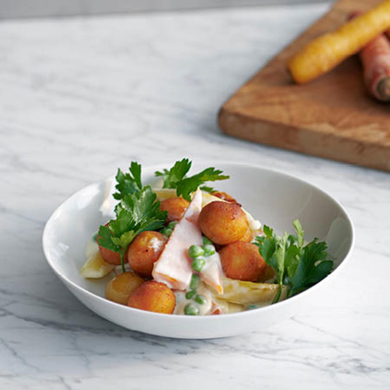 En ekologisk morotsboll där råvarorna har fått växa och gro på naturens egna förutsättningar, ett miljösmart val helt enkelt! Servera med en morotsveloute och nypotatis, toppad med bladpersilja – dina gäster kommer fråga efter mer, vi lovar!