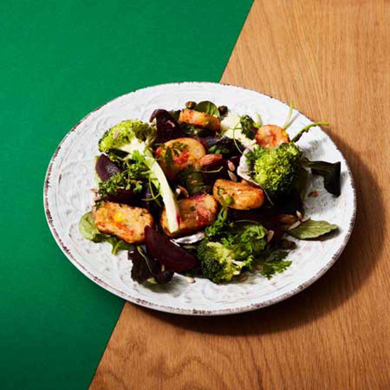 En grönsaksnugget med hela bitar av härliga ekologiska grönsaker som fått växa och gro på naturens egna förutsättningar. Ett miljösmart val helt enkelt! Smörgåsgrillade Grönsaksnuggets passar perfekt i en sallad med broccoli, Felix Klyftade Rödbetor, kålsallad och kapris.