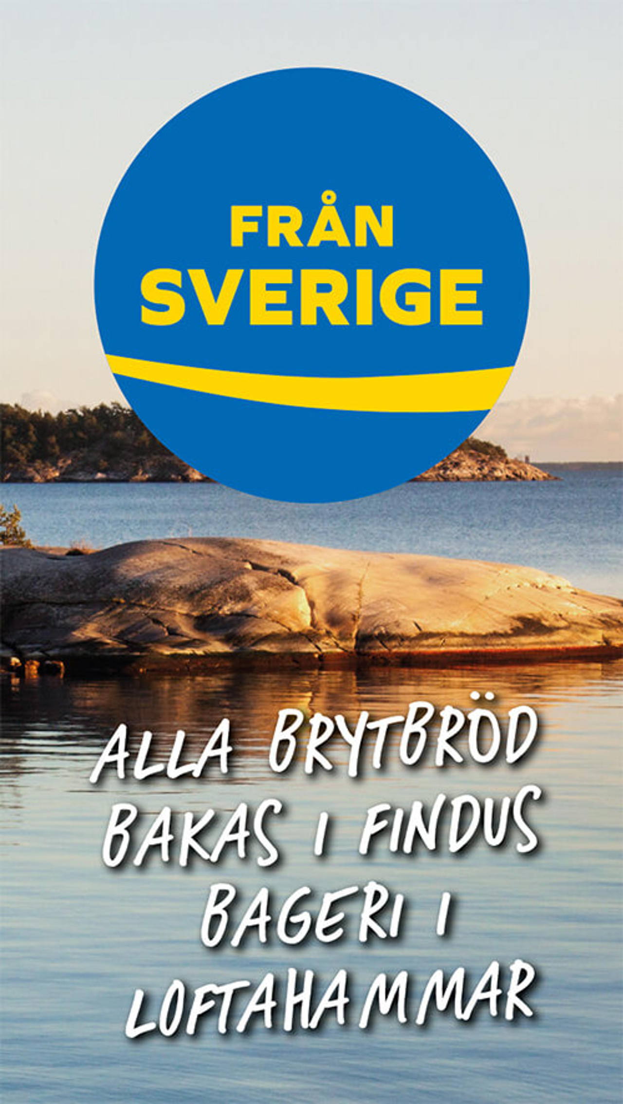 Alla brytbröd från Findus är märkta med ”Från Sverige”. Märkningen garanterar att de är tillverkade i Sverige och att ingredienserna har svenskt ursprung enligt Från Sveriges regelverk. Vi har infört märkning för att möta ert och matgästens intresse för det lokala och göra det enkelt att välja och bjuda på bröd som är bakat i Sverige.