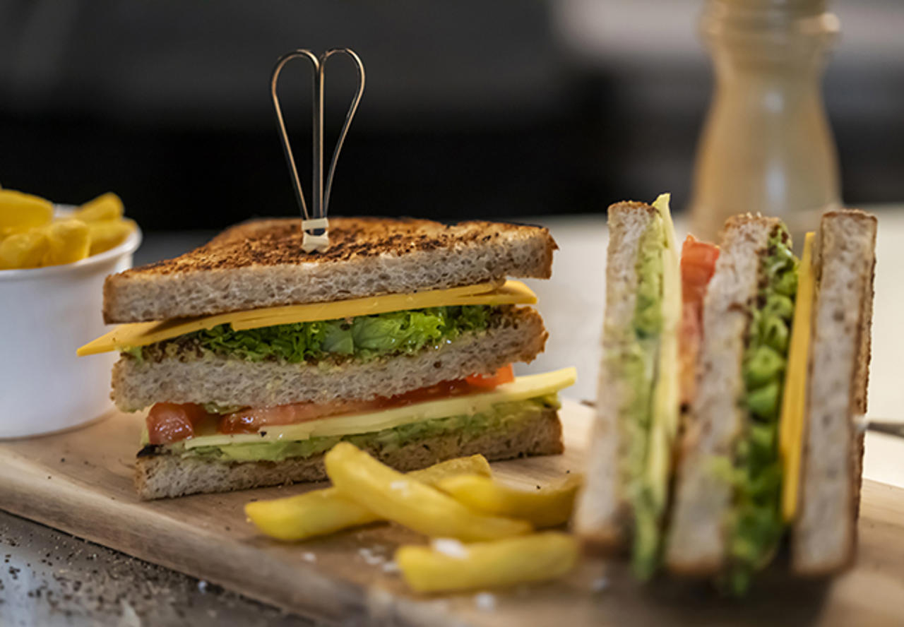 - Dela sandwichen på mitten och servera med nyfriterad pommes.