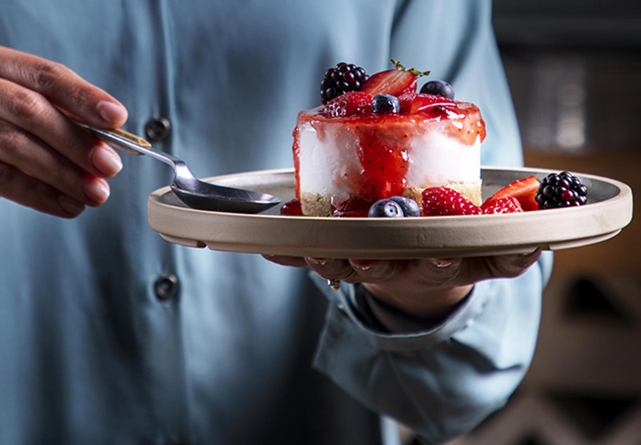 En fräsch frozen no-cheesecake med färska blåbär, jordgubbar och hallon som passar alla då den är helt mjölkfri. Går att göra i förväg och frysa in. Ta ut en halvtimme innan servering. Njut!