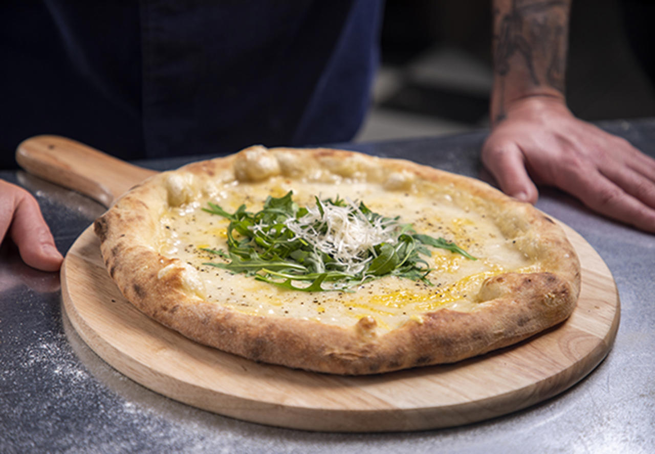 - Grädda ca 10-15 minuter till gyllene. Toppa med rucola, riven Violife Prosociano. Krydda med svartpeppar och salt.