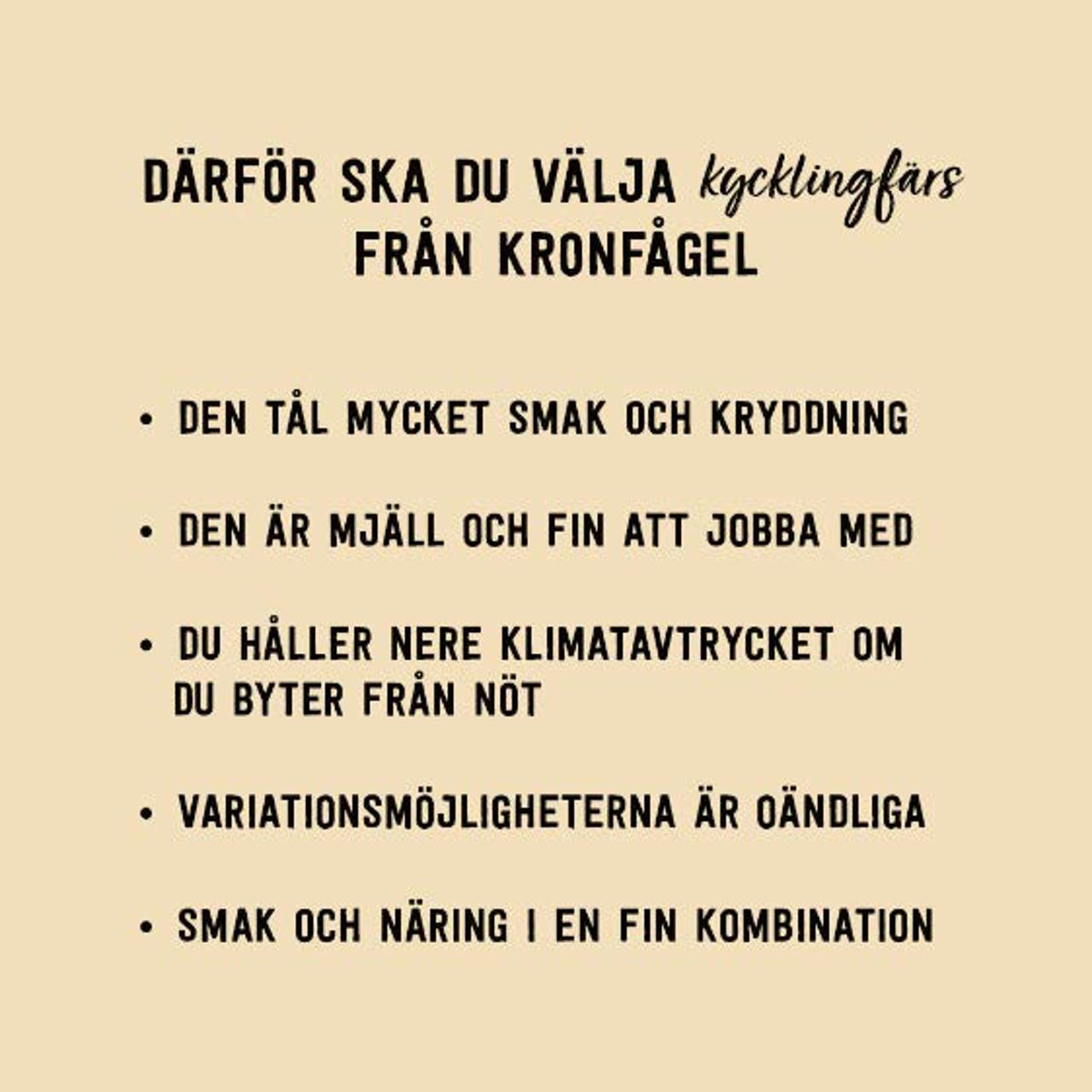 Hur serverar man enkelt en tallrik som är både god och klimatsmart? Välj kyckling från Kronfågel där all kyckling kommer från svenska gårdar. Kyckling som protein är också hälsosamt och en stor favorit hos många.