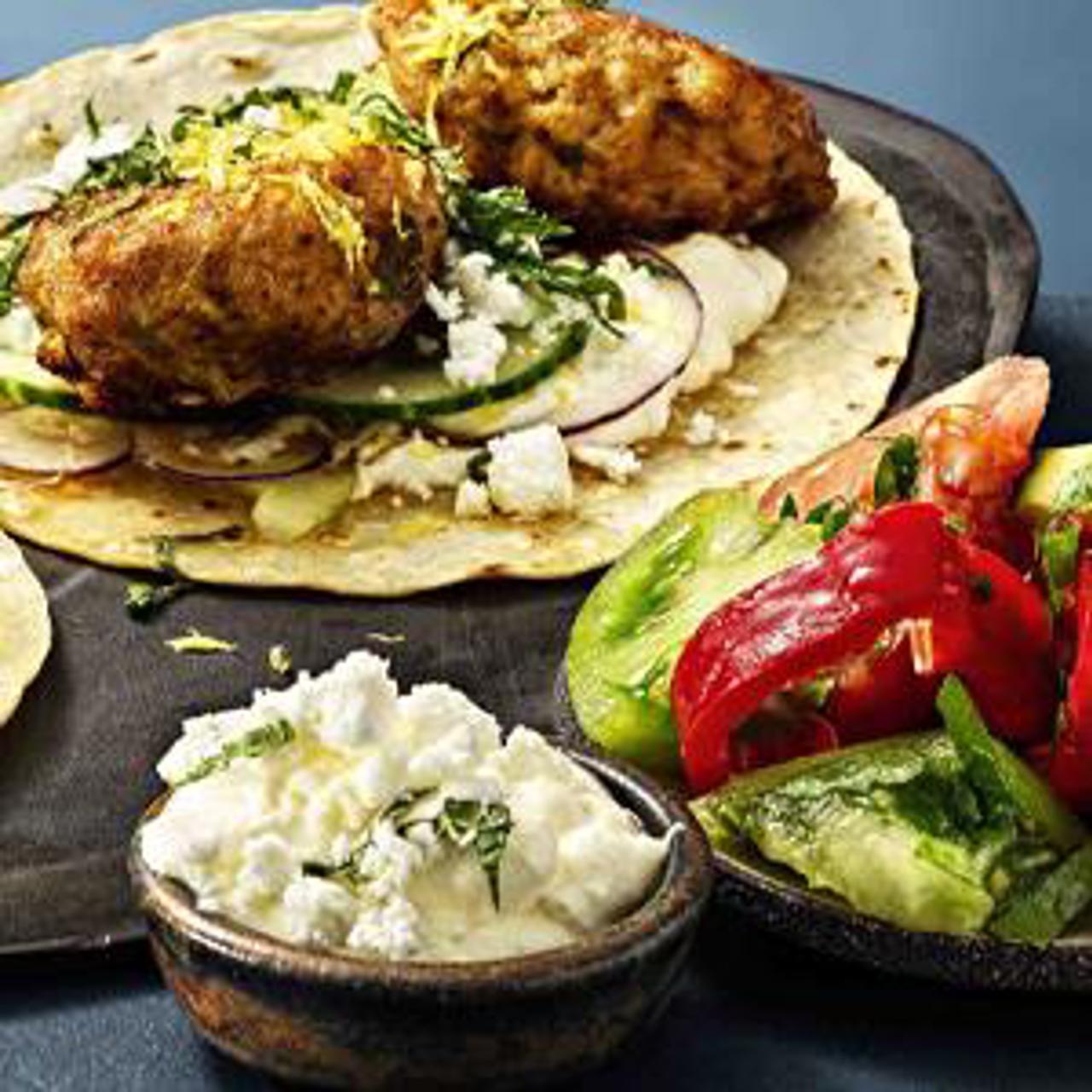 Hacka mynta och blanda med yoghurt, använd både zest och saft från lime och smaka av med salt.