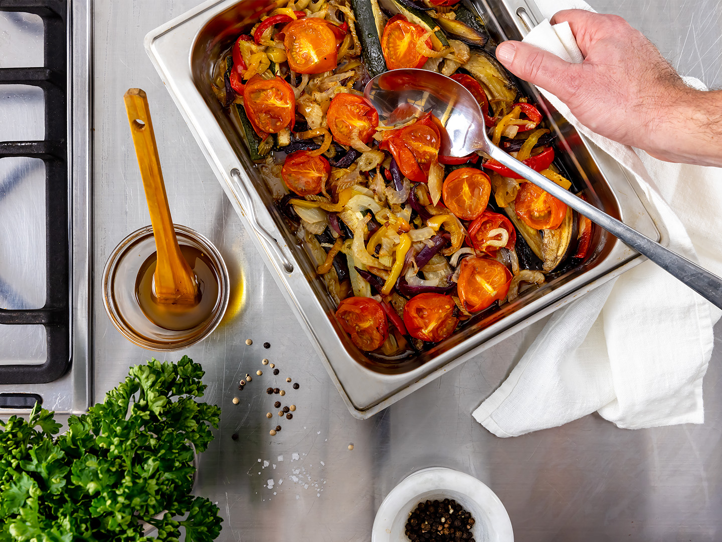 Samma knep fungerar när du ska ugnsbaka primörerna, men då kan du skippa oljan. Fonden tränger in i primörerna och ger dem en mer smakrik och mustig karaktär under tillagning. Perfekt både som tillbehör eller som huvudrollsinnehavare på tallriken.