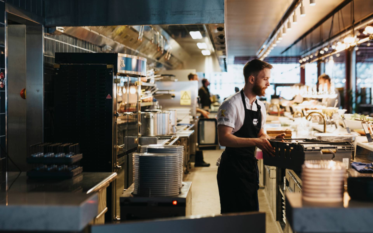 – Traditionellt sett på restauranger som serverar buffé tillagas maten på morgonen, värmehålls under dagen och serveras till lunch. Utmaningen med detta sätt att arbeta ligger i att förutse antalet gäster, vilket lätt kan bli fel och resultera i överskott av mat. På K-märkt löser vi detta genom att tillaga lite mat i taget strax före öppning, och fortsätter så allteftersom kön ökar och minskar under dagen. På så sätt minimerar vi risken att laga för många måltider som inte blir uppätna. Eftersom vi heller inte utgår från en i förväg satt meny, kan vi dagen efter använda eventuella rester.