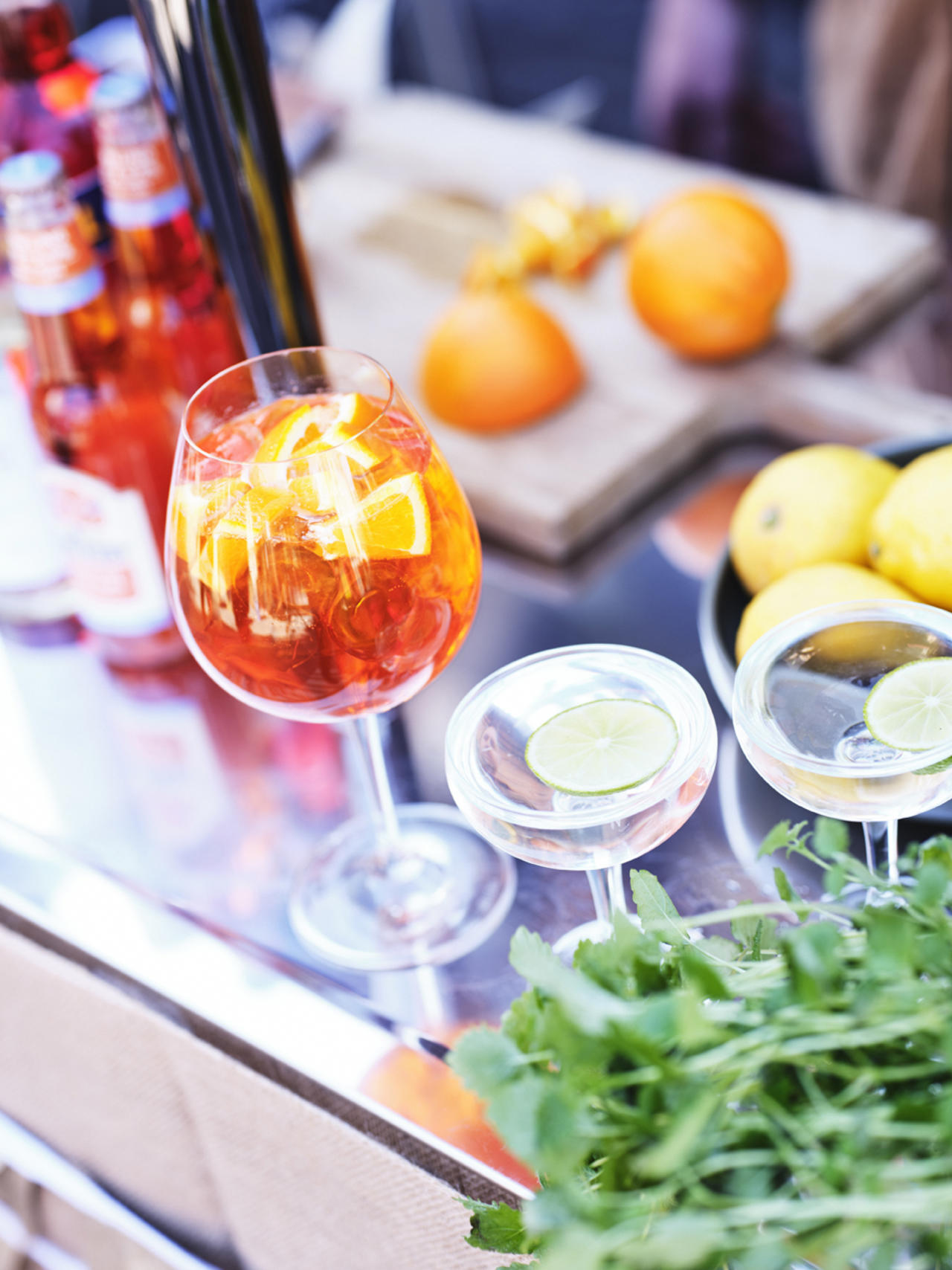 -Det är som vanligt mycket rosé, Aperol Spritz och bubbel men det tycker jag att man ska våga utmana med mer vindrinkar och öl-spritzer, då kan folk också dricka längre vilket är mer lönsamt. Så in med Lillet och Port &Tonic drinklistan.